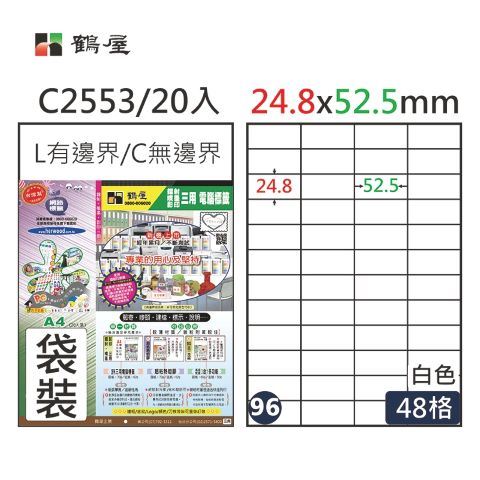 鶴屋 #096 C2553 白 48格 20入 三用標籤/24.8×52.5mm