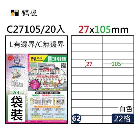 鶴屋 #062 C27105 白 22格 20入 三用標籤/27×105mm