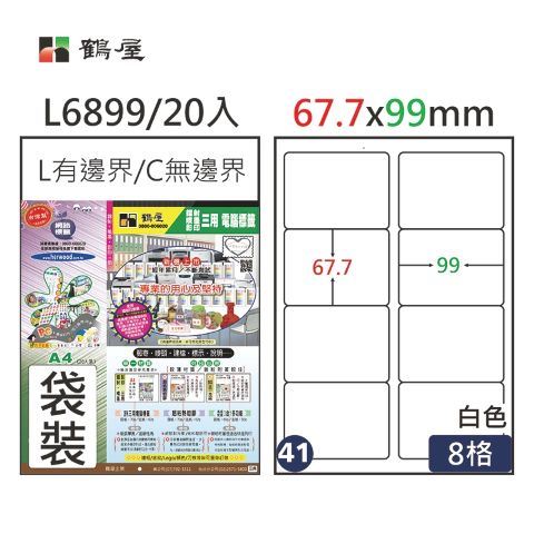 【聯全文具行】鶴屋 #041 L6899 白 8格 20入 三用標籤/67.7×99mm