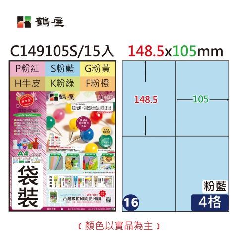 鶴屋#016 C149105 彩色 三用電腦標籤148.5x105mm(15大張/袋裝)
