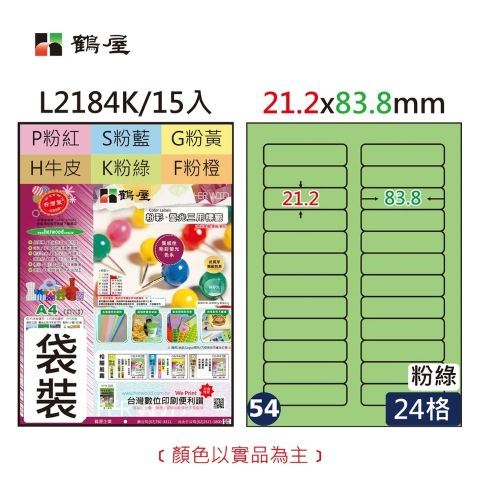鶴屋 #054 L2184 彩色 三用電腦標籤21.2x83.8mm (15大張/袋裝)