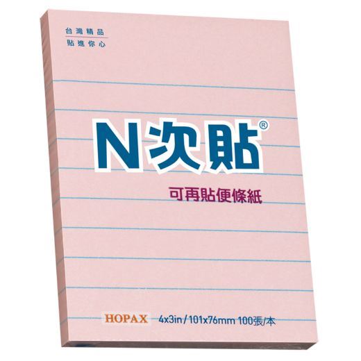 N次貼 61708 橫線型便條紙 4”x3”(101x76mm) 粉紅 100張/本