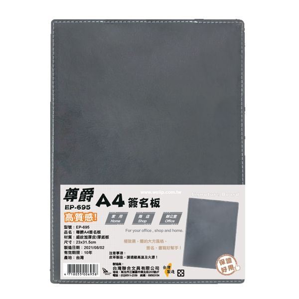 【聯全文具行】W.I.P EP-695 尊爵A4簽名板 皮革板夾