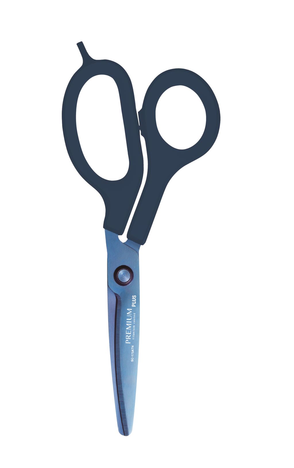 PLUS SC-175ATN 30度弧線剪刀(鈦金屬+3D凹面不沾膠+不對稱) 深藍
