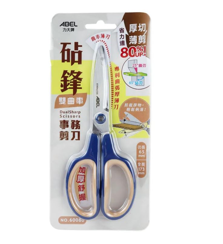 ABEL 力大牌 60080 砧鋒雙曲率事務剪刀