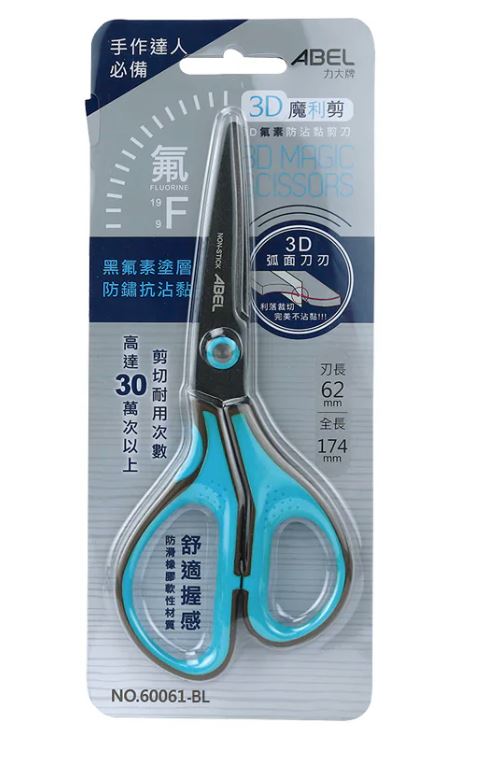 【聯全文具行】ABEL 力大牌 60061 3D魔利剪 7吋氟素防沾黏剪刀