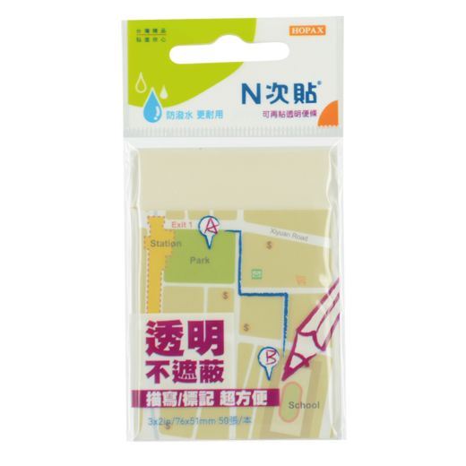 N次貼 66540 螢光透明便條本(白) 3"X2" (76x51mm) 50張/本