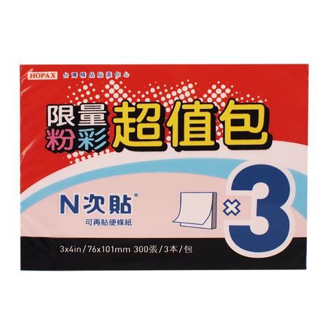 N次貼 61006 超值包 76*101mm 300張/3本 粉紅+綠+藍
