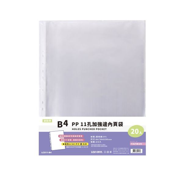 連勤 LC-011-B4 PP 11孔 B4 加厚內頁資料袋 0.08mm 20入