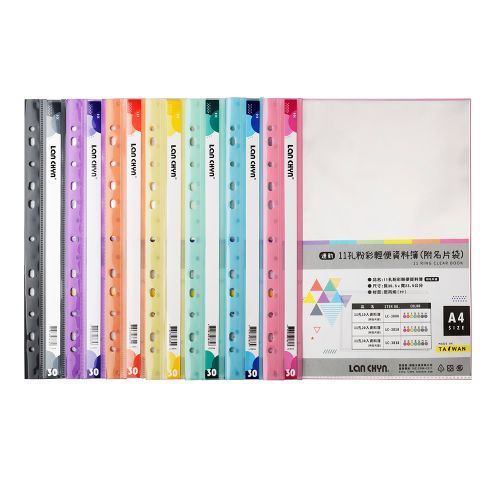 連勤 LC-383A PP A4 11孔 30入 粉彩色系 輕便資料簿 附名片袋