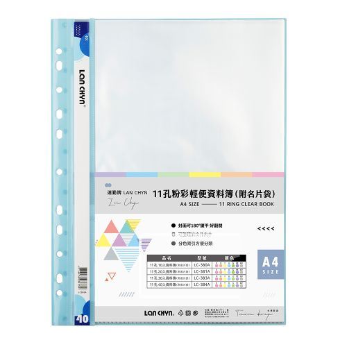 連勤 LC-384A PP A4 11孔 40入 粉彩色系 輕便資料簿 附名片袋