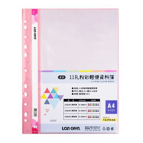 【聯全文具行】連勤 LC-381A-0 PP A4 11孔 20入 粉彩色系 輕便資料簿