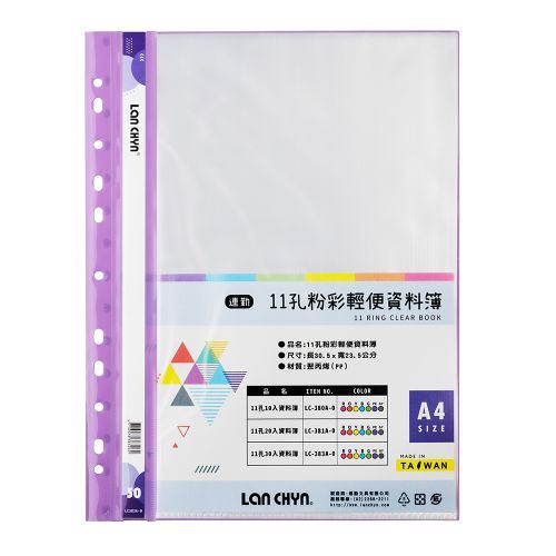 連勤 LC-383A-0 PP A4 11孔 30入 粉彩色系 輕便資料簿