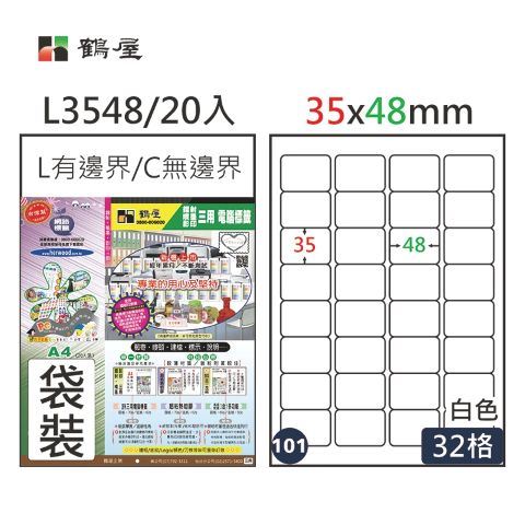 鶴屋 #101 L3548 白 32格 20入 三用標籤/35×48mm