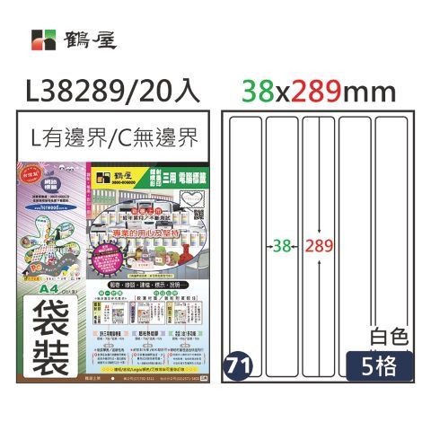 鶴屋 #071 L38289 白 5格 20入 三用標籤/38×289mm