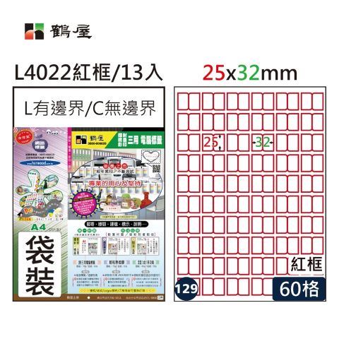 【聯全文具行】鶴屋 L4022 紅框三用索引片 60格 25*32mm(13大張/袋裝)