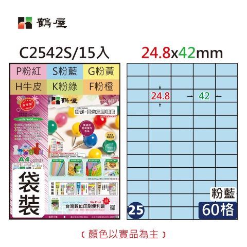 鶴屋 #025 C2542 彩色 三用電腦標籤24.8x42mm(15大張/袋裝)