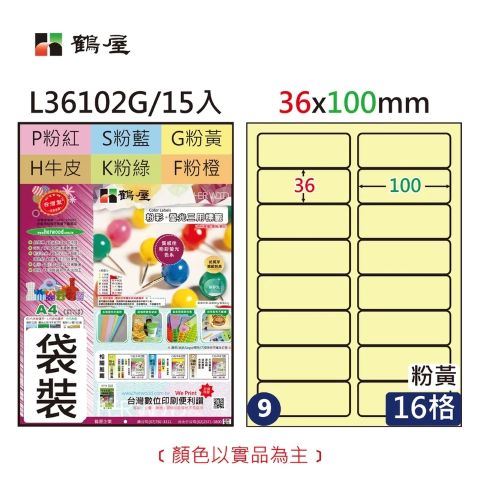 鶴屋 #009 L36102 彩色 三用電腦標籤36x100mm(15大張/袋裝)