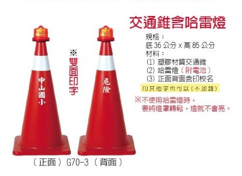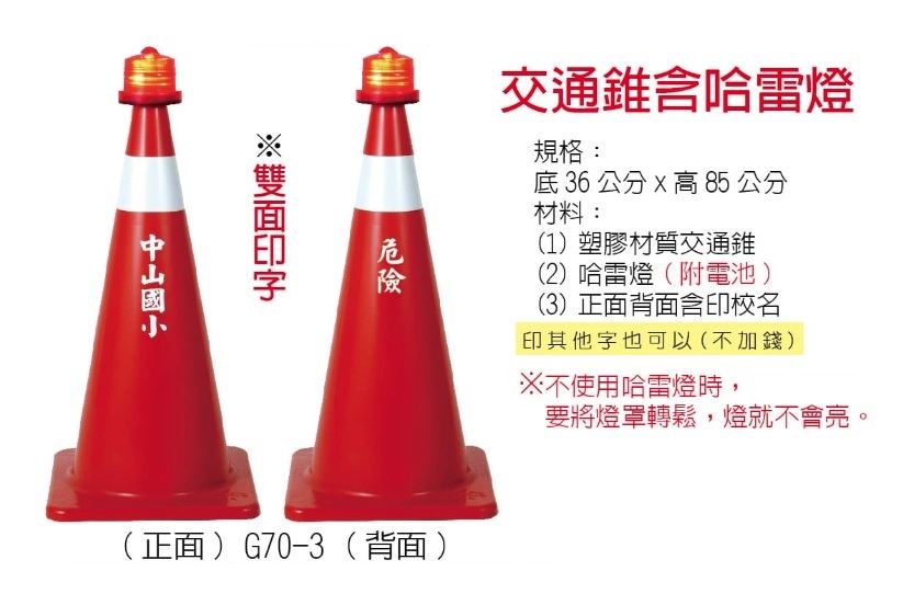 【聯全文具行】G70-3 交通錐+哈雷燈訂製 雙面印字