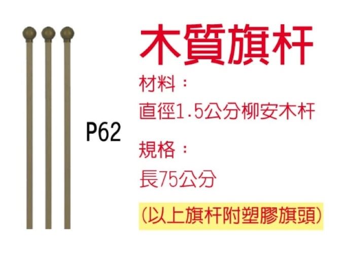【聯全文具行】木質旗桿 柳安木桿 長75cm 直徑1.5cm 附塑膠旗頭