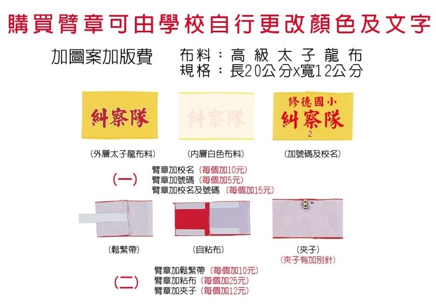 【聯全文具行】臂章訂製 高級太子龍布 20*12cm
