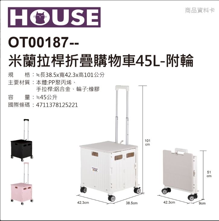 【聯全文具行】OT00187 拉桿折疊購物車45L附輪
