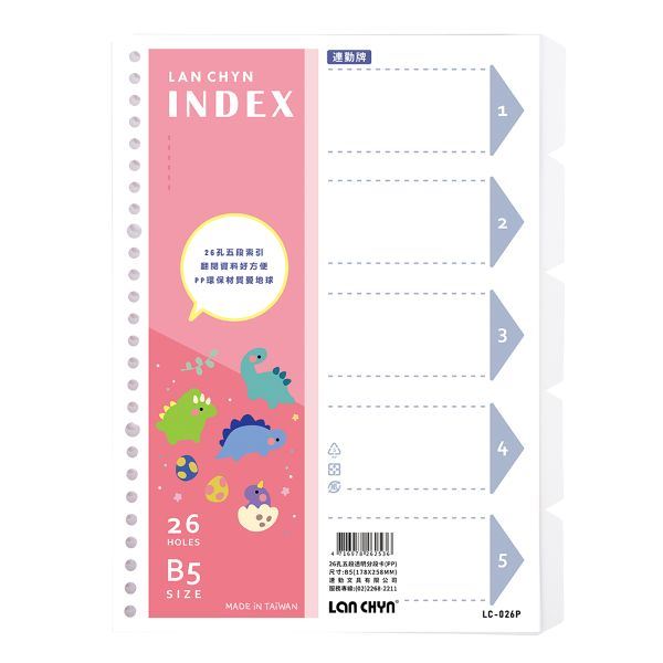 【聯全文具行】連勤 LC-026P PP B5 26孔 五段 透明分段卡