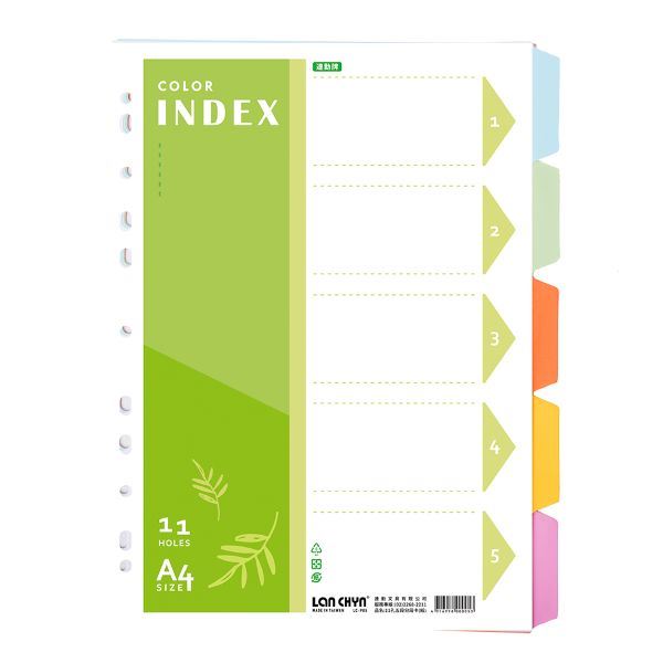 【聯全文具行】連勤 LC-P05 紙質 11孔 五段 分段卡