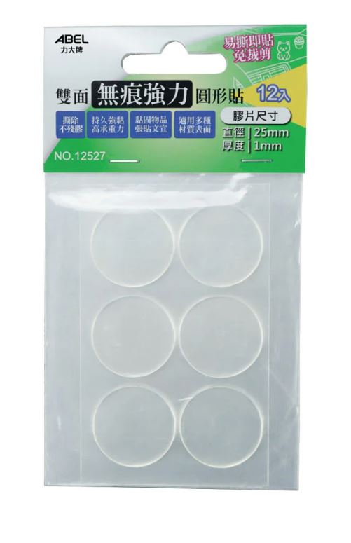 ABEL 力大牌 12527 圓形25mm雙面無痕強力圓形貼