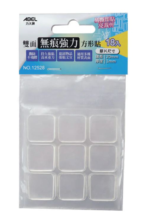 ABEL 力大牌 12528 正方形20mm雙面無痕強力方形貼