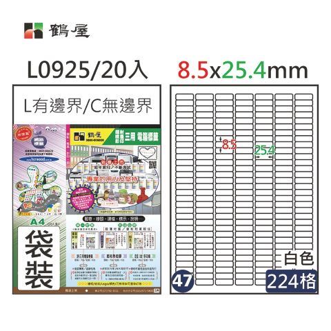 鶴屋 #047 L0925 白 224格 20入 三用標籤/8.5×25.4mm