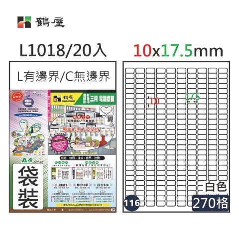 【聯全文具行】鶴屋 #116 L1018 白 270格 20入 三用標籤/10×17.5mm