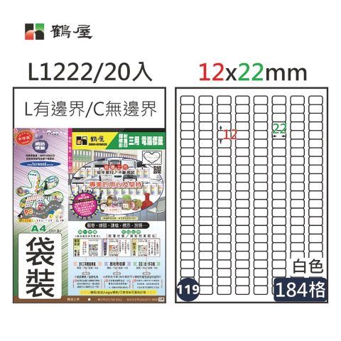 鶴屋 #119 L1222 白 184格 20入 三用標籤/12×22mm