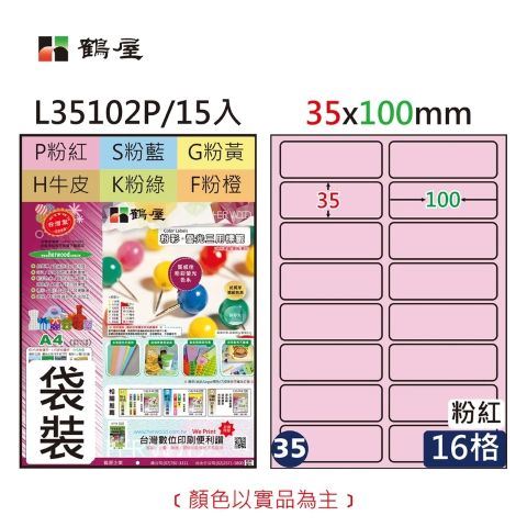 鶴屋 #035 L35102P 三用電腦標籤35x100mm粉紅(15大張/袋裝)