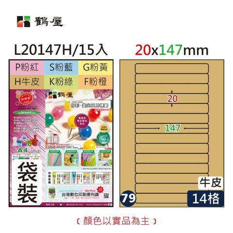 鶴屋 #079 L20147H 三用電腦標籤20x147mm牛皮 (15大張/袋裝)