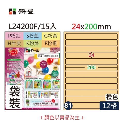 鶴屋 #081 L24200 彩色 三用電腦標籤24x200mm (15大張/袋裝)