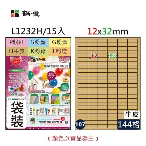 鶴屋 #107 L1232 彩色 三用電腦標籤12x32mm (15大張/袋裝)