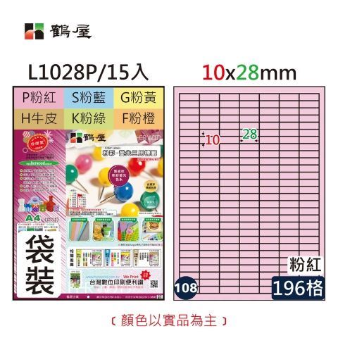 鶴屋 #108 L1028 彩色 三用電腦標籤10x28mm (15大張/袋裝)