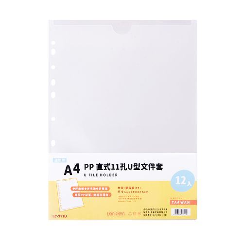 連勤 LC-311U PP A4 11孔透明直式 U型文件套 12入