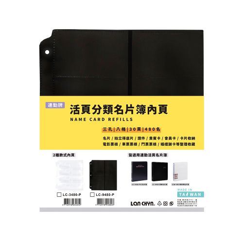 【聯全文具行】連勤 LC-9480-P PVC 480名 發泡皮活頁分類名片簿 (內頁)