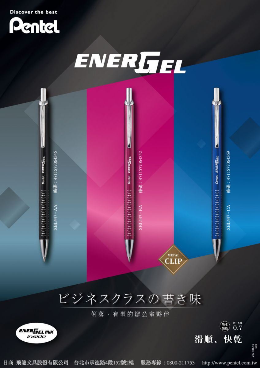 - 筆身輕盈,附有金屬筆夾。