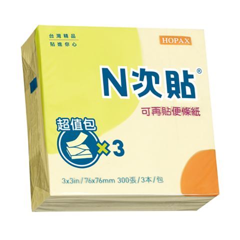 【聯全文具行】N次貼 61007 超值包 76*76mm 300張/3本 黃