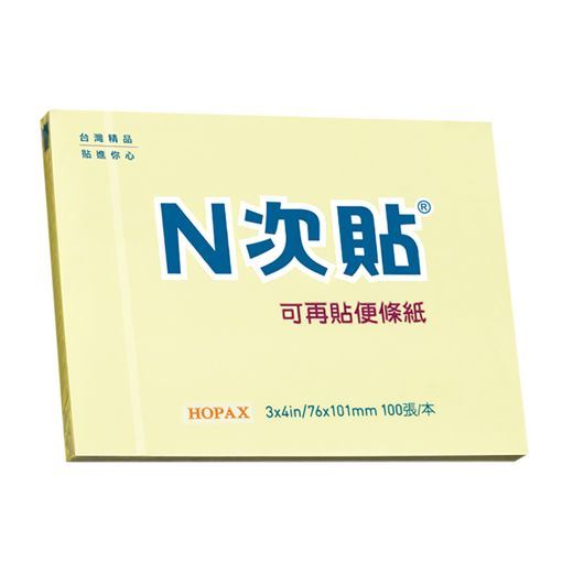 N次貼 61121 標準型可再貼便條紙 3"x4"(76x101mm),黃 100張/本
