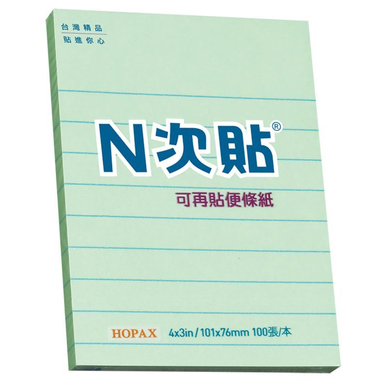 N次貼 61710 橫線型便條紙 4”x3”(101x76mm) 綠 100張/本