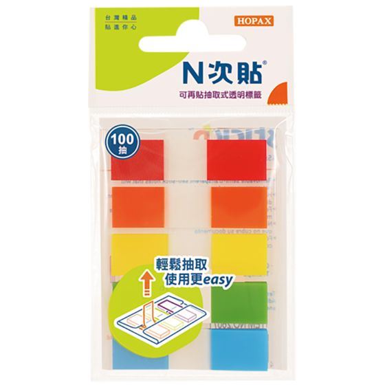 【聯全文具行】N次貼 66610 5色塊抽取式螢光透明標籤 45x12mm 20張/5色/袋