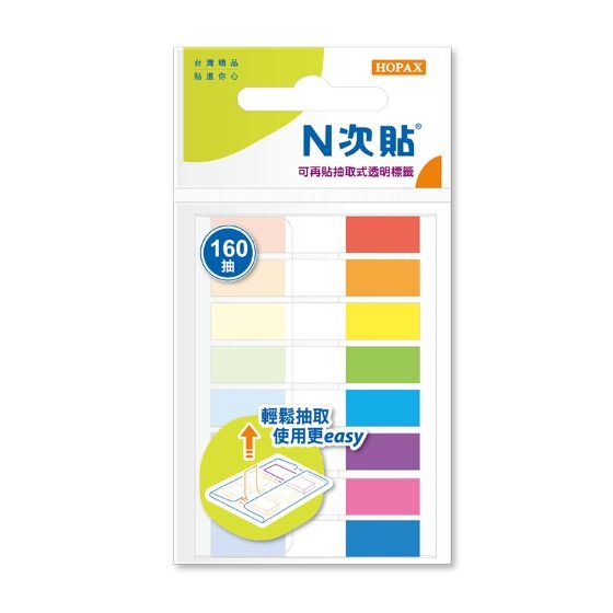 N次貼 66612 8色塊抽取式螢光透明標籤 45x8mm 20張/8色/袋
