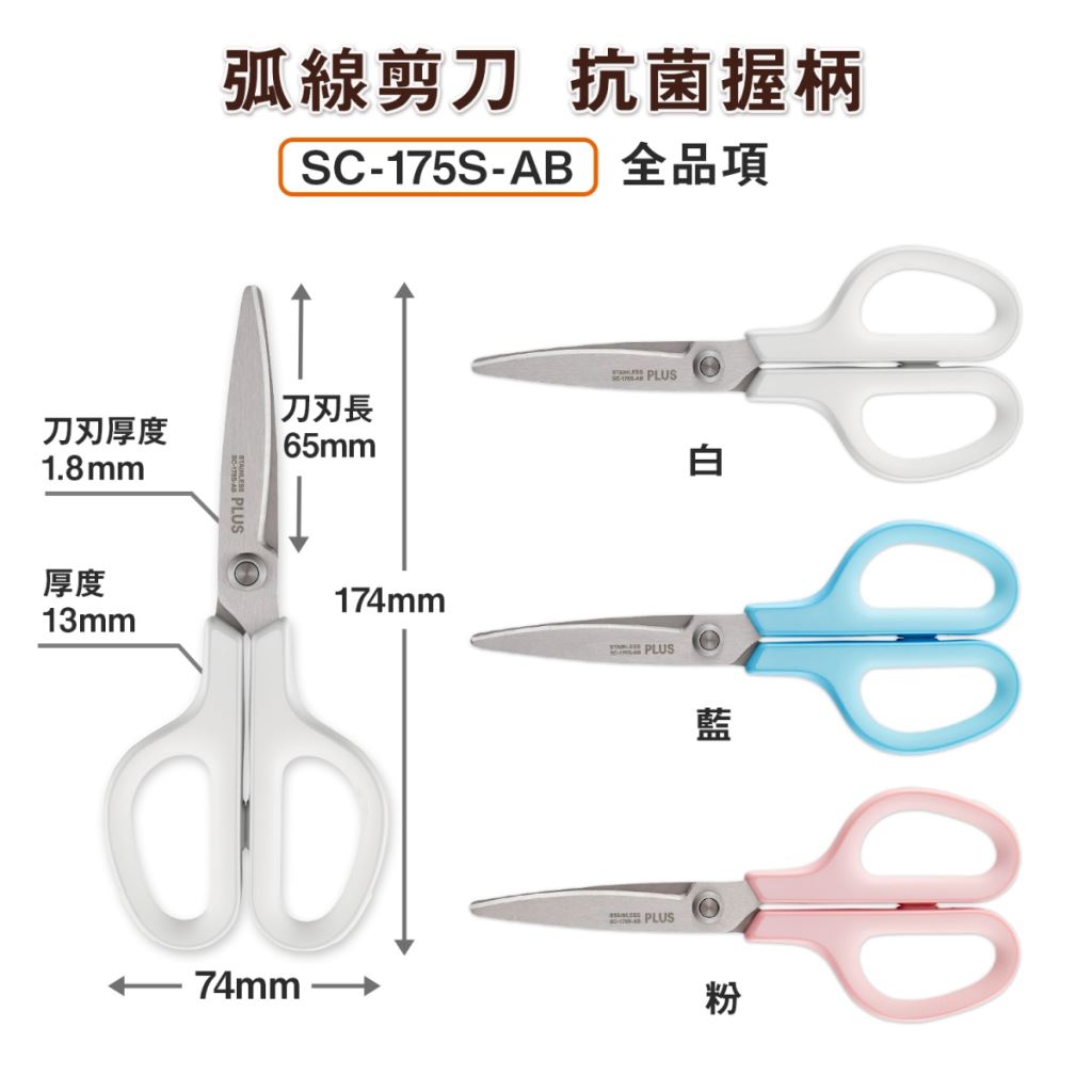 【聯全文具行】PLUS SC-175S-AB 抗菌型弧線剪刀