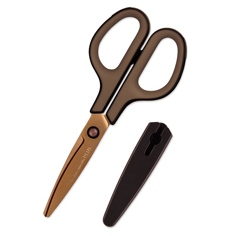 PLUS SC-175ST 30度弧線剪刀(鈦金屬附蓋) 褐