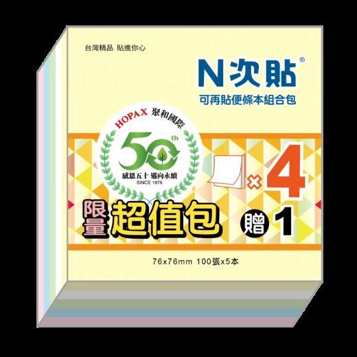 N次貼 67026 可再貼便條本組合包(5入) 76x76mm 100張x5本