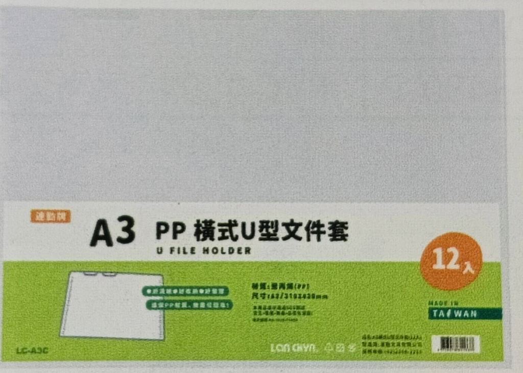 【聯全文具行】連勤 LC-A3C PP A3 橫式U型文件套 12入